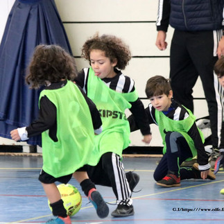 Dimanche matin, c'est dans l'enceinte beaucoup plus tempérée du gymnase Brassens à Décines, qu'un plateau de futsal réunissait seulement 4 formations, des clubs ayant annulé leur participation. Là aussi, les éducateurs purent se montrer satisfaits des progrès réalisés par leurs troupes, ayant déjà bien assimilé cette pratique pourtant nouvelle pour beaucoup d'enfants.