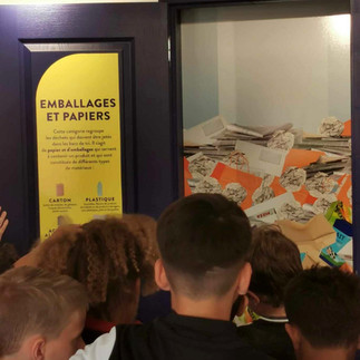 Nos jeunes purent ainsi prendre connaissance, de façon ludique, des différents modes de tris, des bons gestes à adopter en fonction de la nature des déchets, visiter le centre de traitement, avec les tapis roulants permettant cette sélection, et terminer par des jeux vidéos, ou manuels, sur les différents moyens destinés à réduire notre empreinte carbone.